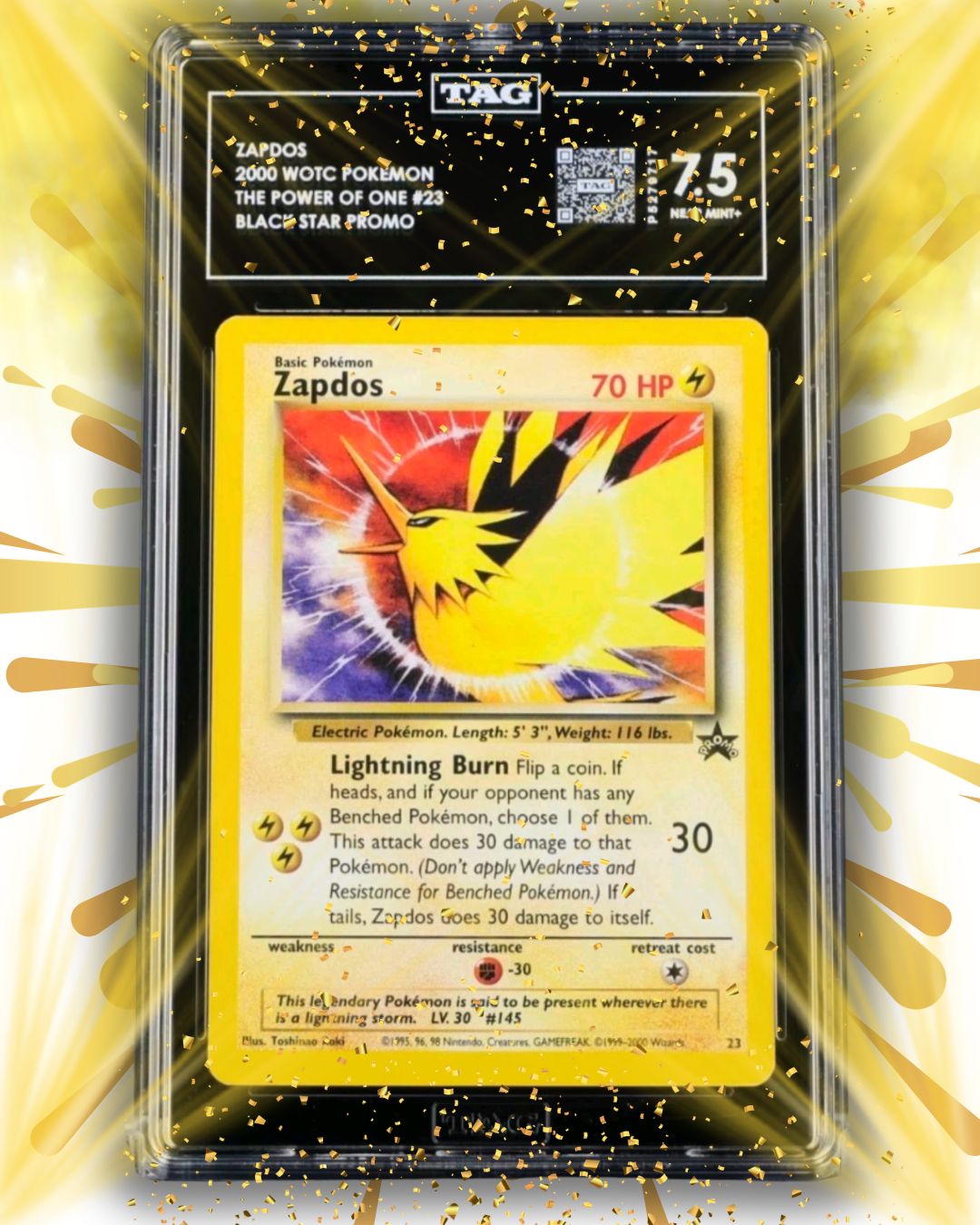 - 1 × Chase graded card (TAG 7.5 Zapdos Power Of One Black Star Promo)