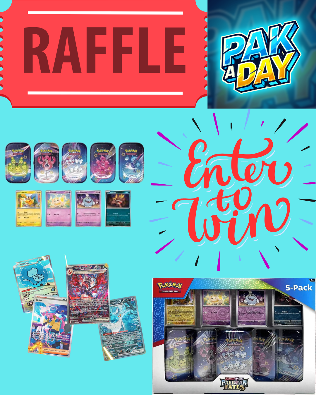 Weโre back with another EPIC raffle, and this time, one lucky winner is taking home the Paldean Fates Mini Tins box set!
