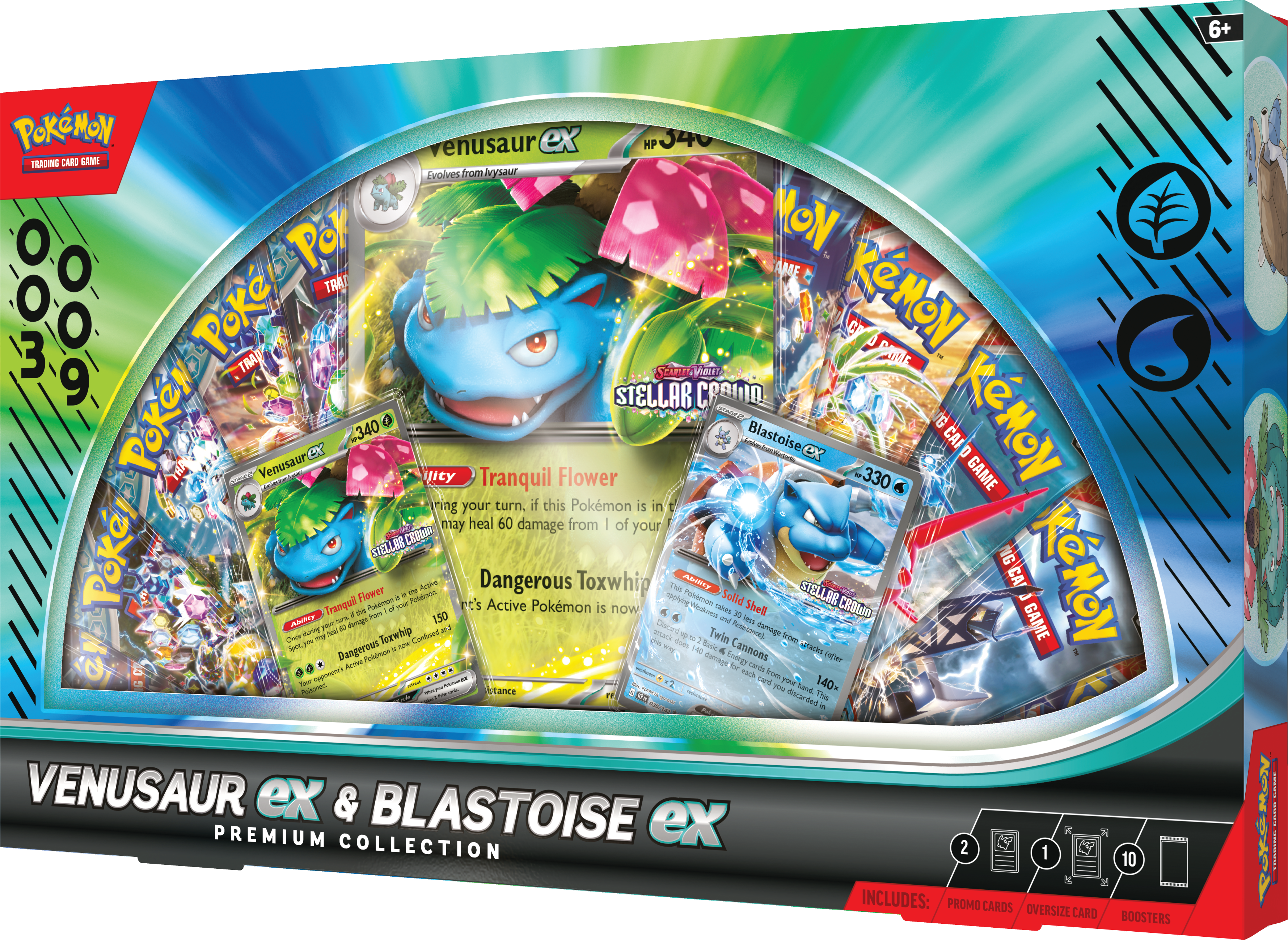 The Pokémon TCG: Venusaur ex & Blastoise ex Premium Collection includes: